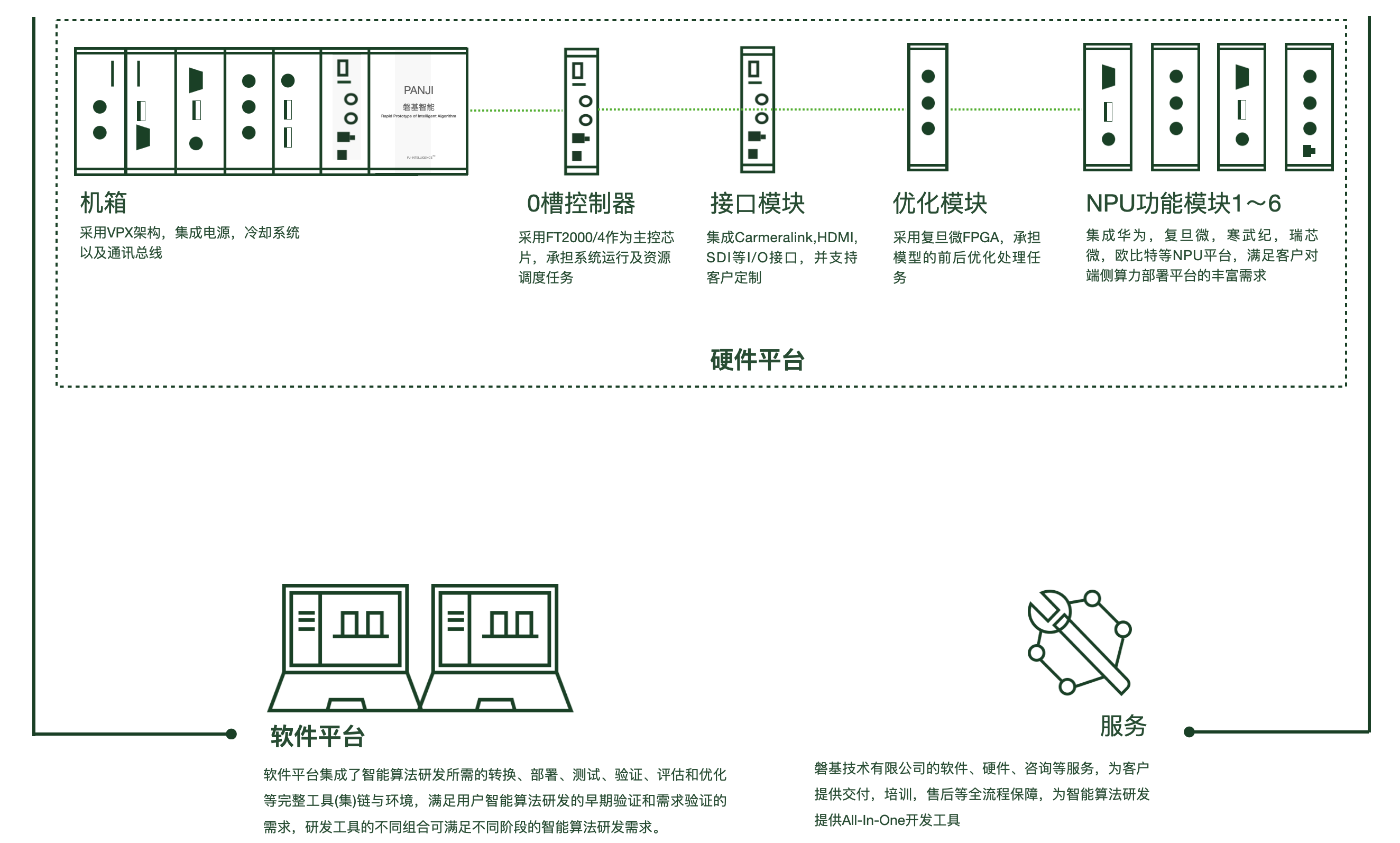 磐基智能是磐基技術(shù)有限公司的核心業(yè)務(wù)板塊。2018年以來(lái),面向圖像識(shí)別和智能決策等人工智能技術(shù)應(yīng)用需求,為航天、電科和船舶等行業(yè)領(lǐng)域,研制了10余種智能軟硬件和智能算法產(chǎn)品?;趪?guó)產(chǎn)和進(jìn)口NPU處理器,開(kāi)展了智能產(chǎn)品與算法的研發(fā)技術(shù)深度研究,積累了豐富的智能產(chǎn)品研發(fā)經(jīng)驗(yàn)與流程方法,形成了以“磐基智能_PJ Intelligent™”為品牌標(biāo)志,包含智能算法的轉(zhuǎn)換、部署、測(cè)試、驗(yàn)證、評(píng)估和優(yōu)化等研發(fā)流程、方法和工具集的磐基核心技術(shù)體系?;谂突悄芗夹g(shù)體系,實(shí)現(xiàn)了智能算法快速原型平臺(tái)_PJ Intelligent Prototype 產(chǎn)品系列,為智能算法研發(fā)用戶提供集成的算法研發(fā)流程環(huán)境,以滿足早期驗(yàn)證和需求驗(yàn)證的需要。